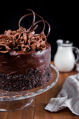 Классический торт с шоколадным бисквитом и сливочно-шоколадным кремом под нежной глазурью. Для настоящих любителей шоколада.